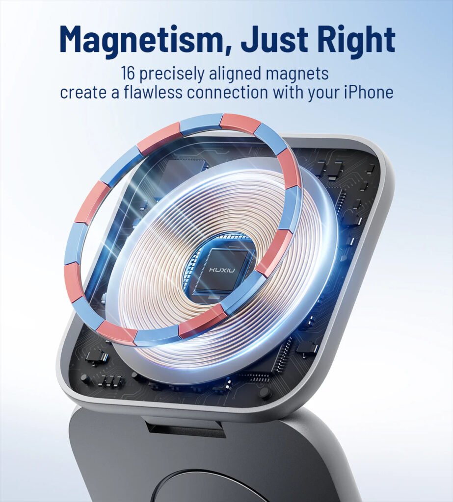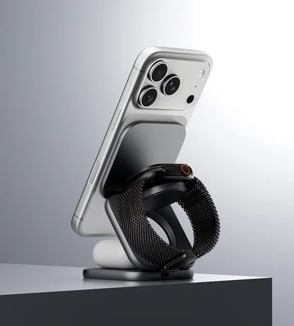 X40 Turbo Qi2.2 Certified 25W 3-in-1 MagSafe Foldable Wireless Charging Stand – Gray